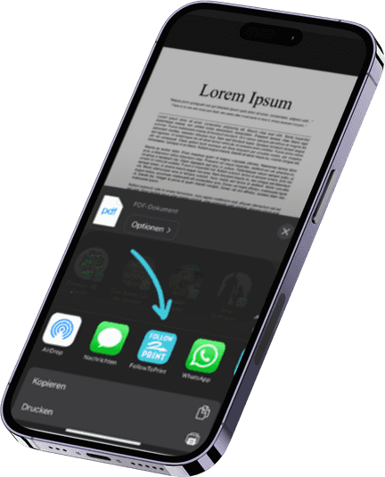 The app uses the smartphone's share function to conveniently print digital documents worldwide or delegate them to colleagues.